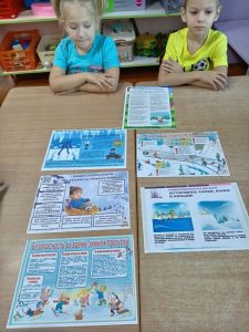 Цель: создать условия для формирования у детей дошкольного возраста представлений о правилах безопасности во время зимних игр, необходимых мерах предосторожности.