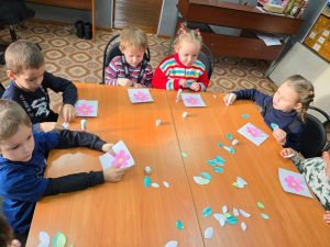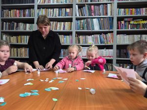 ДК пос. Санболи пригласил в гости воспитанников МБДОУ № 41. Библиотекарь Тузовская Александра Игоревна провела мастер-класс по изготовлению открытки для мамы.